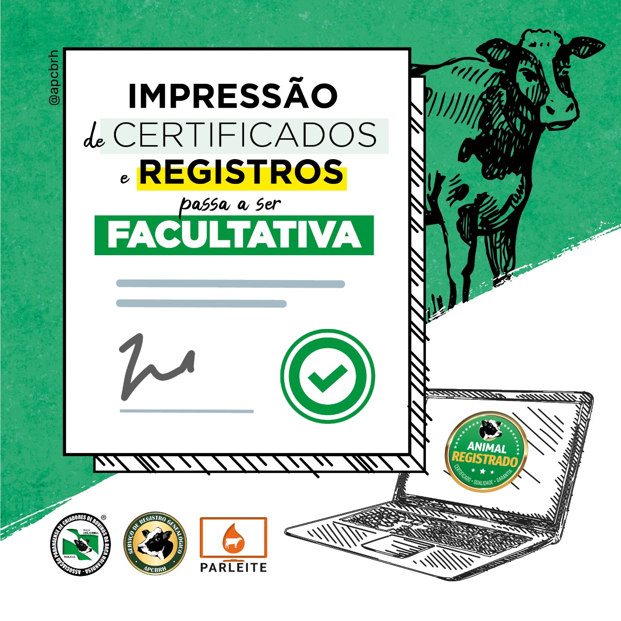 A Associação Paranaense de Criadores de Bovinos da Raça Holandesa (APCBRH), em alinhamento com a Associação Brasileira (ABCBRH) e com aval do Ministério da Agricultura, Pecuária e Abastecimento (Mapa), tornou facultativa a impressão dos certificados e do registro genealógico via associação.